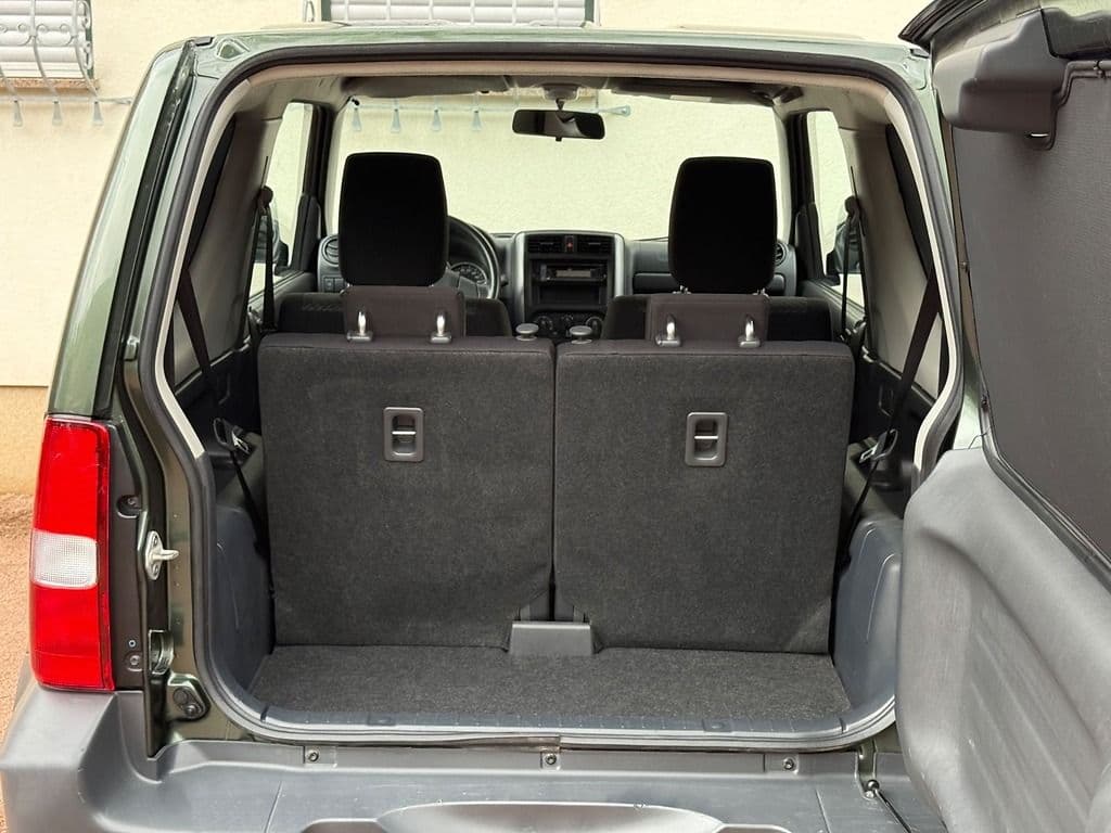 sparsamer universeller ALLRAD-Klein-Jeep Suzuki Jimny, Heckantrieb oder 4x4 - elektronisch per Knopfdruck zuschaltbarer Allrad 4H (Straße) / 4L(Geländeuntersetzung), Servolenkung, Schaltgetriebe, Wärmeschutzverglasung, 3. Bremsleuchte, Drehzahlmesser, ABS, Radio, geteilt umklappbare Rücksitzlehne mit separat einstellbarer Lehnen-Neigung, Kopfstützen hinten, ...