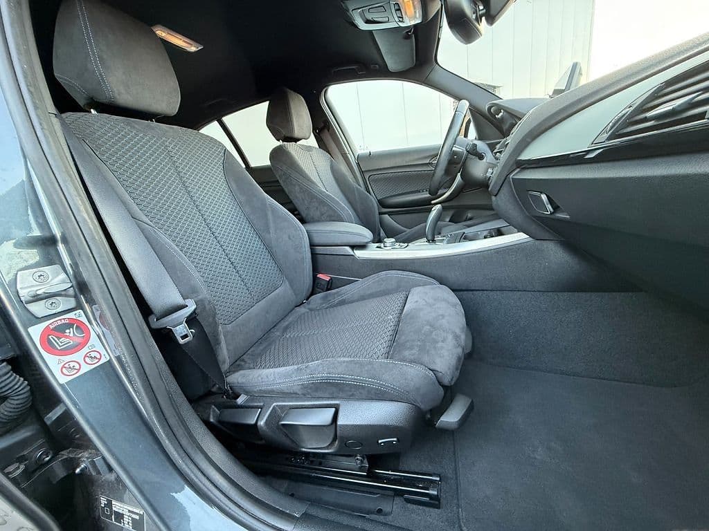 Hier zeigen wir Ihnen unseren BMW 118i 5-TÜRER. Diese kompakte Kombi-Limousine ist einer der sparsamsten seiner Klasse und bietet ein sportliches Fahrerlebnis gepaart mit einer sportlichen Ausstattung. Das Fahrzeug hat eine besonders ansprechende Optik durch das werkseitige M-Sportpaket . Wenn Sie also ein gepflegtes Fahrzeug für ihre persönlichen Anforderungen suchen, ist das genau das richtige Auto für Sie.