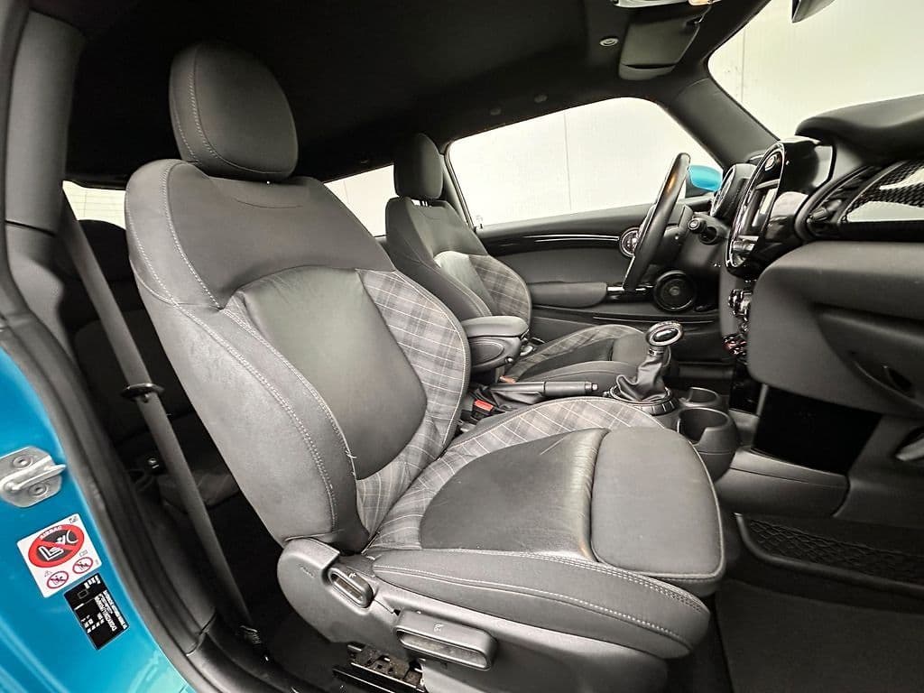 Hier zeigen wir Ihnen unseren MINI COOPER S. Der Mini Cooper S mit dem exklusiven John Cooper Works (JCW) Paket verkörpert unvergleichliche Sportlichkeit und stilvolles Design. Das LEISTUNGSSTARKE Fahrzeug begeistert mit seinem charakteristischen Aussehen, das durch aerodynamische Elemente, markante Optik und die schwarzen 17-Zoll-Leichtmetallräder betont wird.