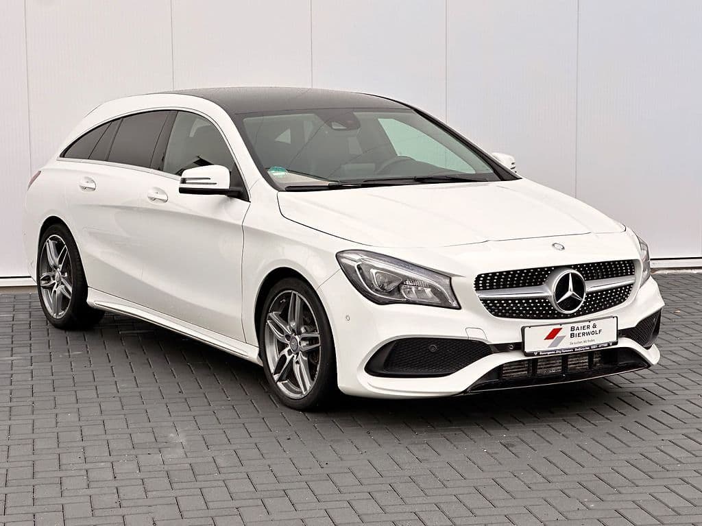 Hier zeigen wir Ihnen unseren MERCEDES-BENZ CLA200d SHOOTING-BRAKE . Diese einzigartige Kobination KOMBI und SPORT-COUPÉ ist einer der sparsamsten seiner Klasse und bietet ein sportliches Fahrerlebnis gepaart mit komfortablem Reisen. Das Fahrzeug hat eine besonders ansprechende Optik durch das werkseitige AMG-SPORTPAKET . Wenn Sie also ein gepflegtes Fahrzeug für ihre persönlichen Anforderungen suchen, ist das genau das richtige Auto für Sie.