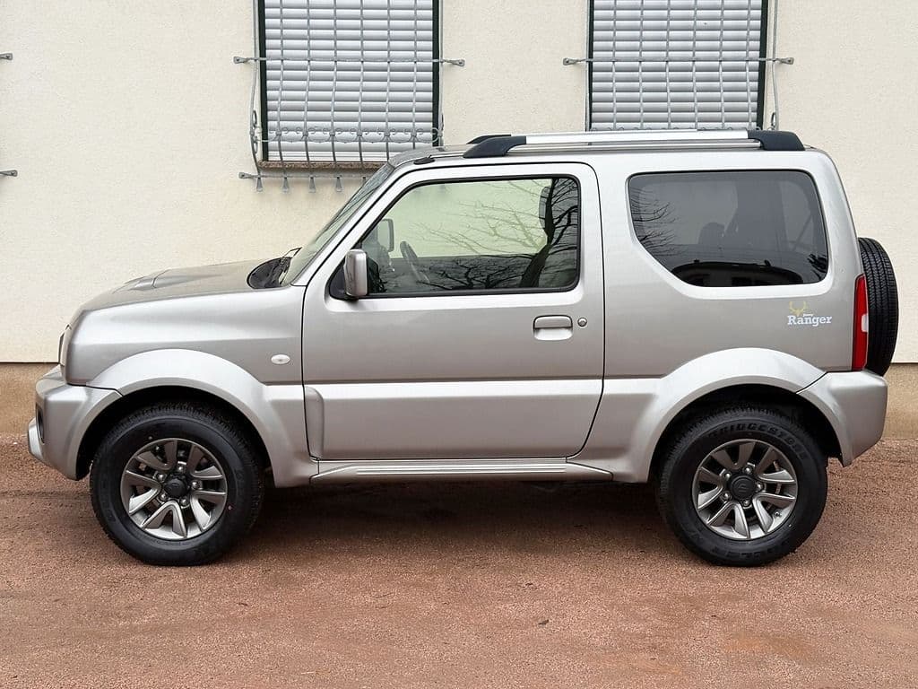 sparsamer universeller ALLRAD-Klein-Jeep Suzuki Jimny, sehr handlich, Heckantrieb oder 4x4 - elektronisch per Knopfdruck zuschaltbarer Allrad 4H (Straße) / 4L(Geländeuntersetzung), gute Ausstattung wie KLIMA , Servolenkung, elektrische Fensterheber, elektrisch einstellbare Außenspiegel beheizbar, Zentralverriegelung mit Fernbedienung, metallic-Lackierung, Dachreling, gepflegte Innenausstattung, Schaltgetriebe, Sitzheizung vorn, Wärmeschutzverglasung, 3. Bremsleuchte, Drehzahlmesser, ABS, geteilt umklappbare Rücksitzlehne mit separat einstellbarer Lehnen-Neigung, Kopfstützen hinten, Ablagefächer in den Türen und hinten mit Trinkbecheraufnahme, neuwertige Bereifung Alu-Felgen, extra dunkle Scheibentönung hinten, abnehmbare AHK , ...